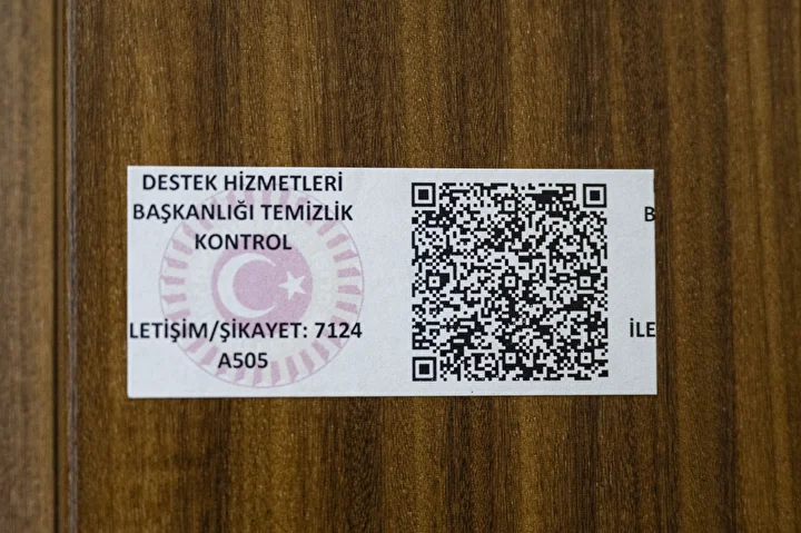 TBMM’de milletvekili odaları, tuvaletleri ve diğer ortak kullanım alanlarında, temizlik hizmetlerinin daha düzenli yürütülmesi için karekod takip sistemi kuruldu. Her kapıya, Destek Hizmetleri Başkanlığı temizlik kontrol etiketleri üzerinde karekodlar yerleştirildi.
